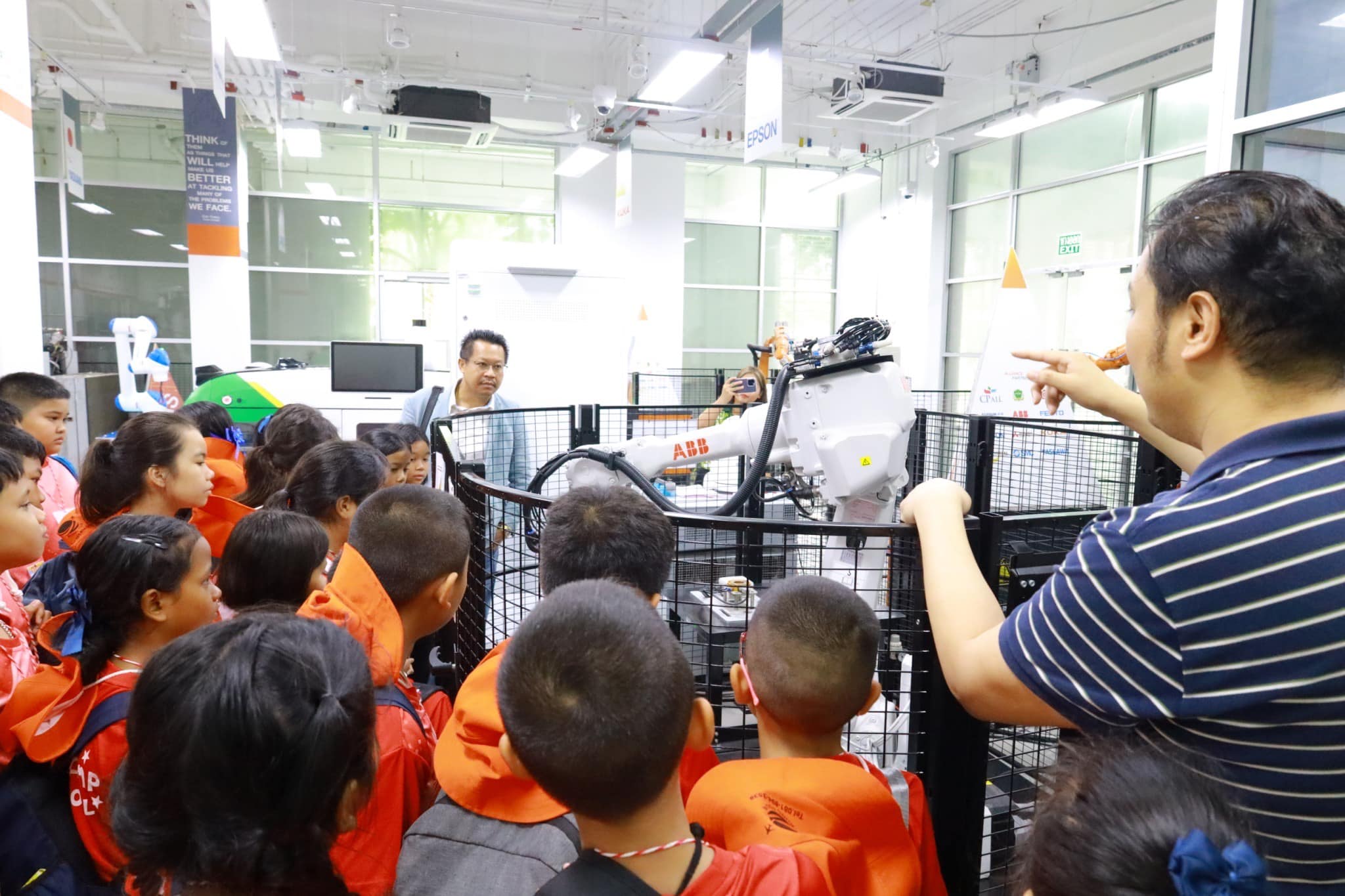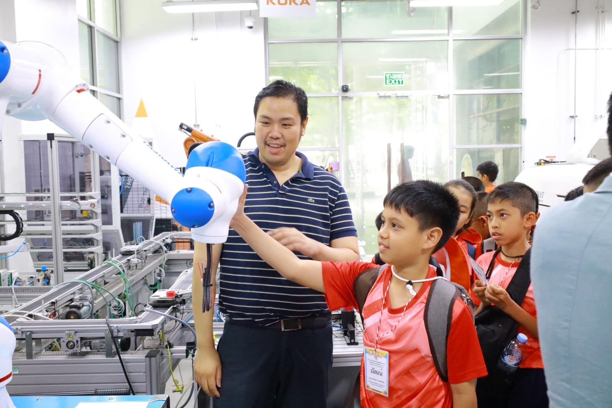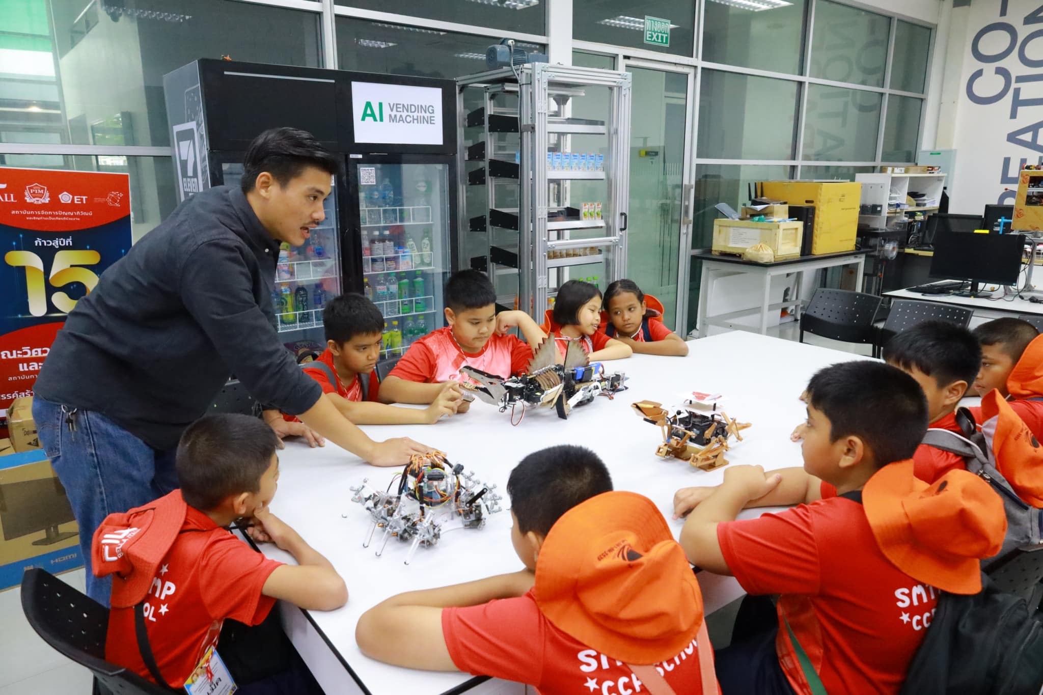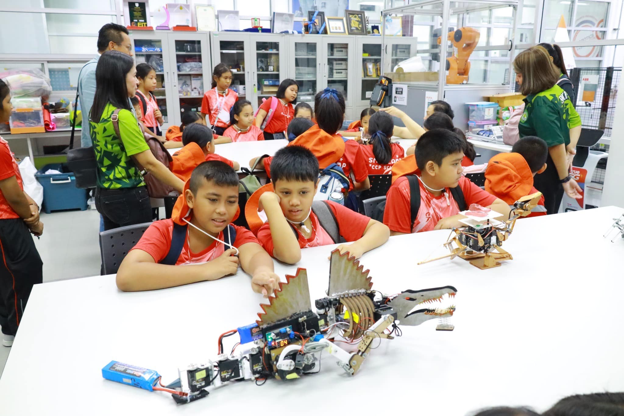 กิจกรรมที่ 8 นักเรียนได้เรียนรู้ตั้งแต่พื้นฐานการทำหุ่นยนต์ขนาดเล็ก ไปจนถึงการนำไปต่อยอดในการทำหุ่นยนต์ในขบวนการผลิตของโรงงานอุตสาหกรรม